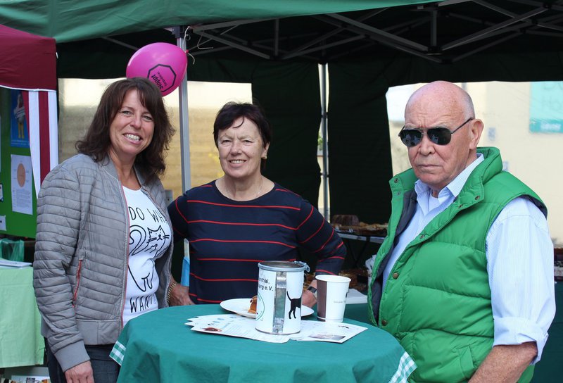 In zentraler Lage zeigte der Tierschutzverein Flagge: Am Info-Stand informierten Gunhild Olsen, Jennifer Rehren und Anina Schiwara über aktuelle Themen wie Massentierhaltung von Kaninchen und Hühnern und sammelten fleißig Unterschriften für eine artgerechte Tierhaltung.