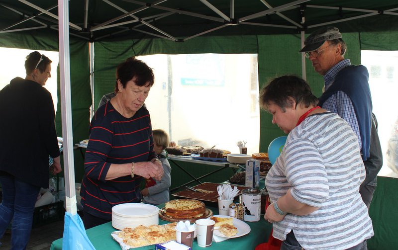Eine riesige Auswahl bot auch der Kuchenstand: Hier hatten fleißige Bäckerinnen und Bäcker für eine leckere und reichhaltige Auswahl an selbstgemachten Torten und Kuchen gesorgt und die Besucherinnen und Besucher griffen bei Sigrid Eilers und Siri Hindmarch am Stand gerne zu.