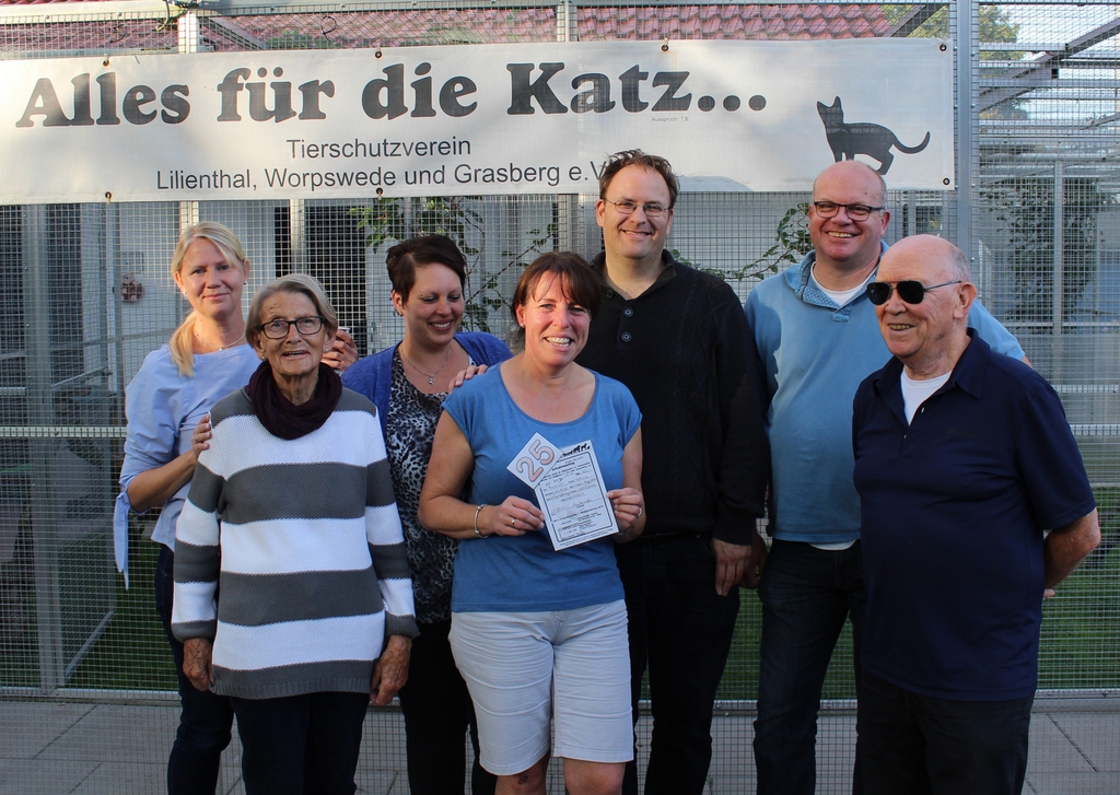 Eine Überraschung sollte es werden - das haben sich die Ehrenamtlichen und der Vorstand des Vereins fest vorgenommen. So traf man sich am gestrigen Tage, den 23. August 2017, gegen 18 Uhr heimlich im Katzenhaus und schmückte einen Tisch mit Geschenken, Knabbereien und Getränken. Unter dem Vorwand, das Bürogebäude aufzuräumen, hatte Sven Peters, der 1. Vorsitzende des Vereins, Kathrin Schulze ins Katzenhaus Lilienthal „gelockt“.