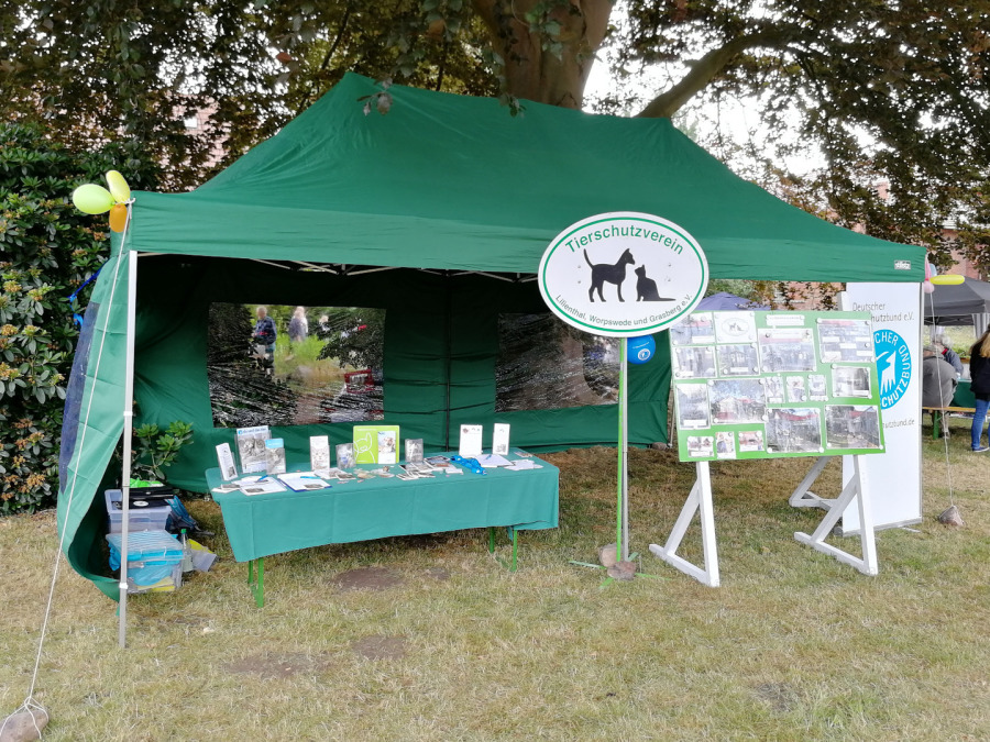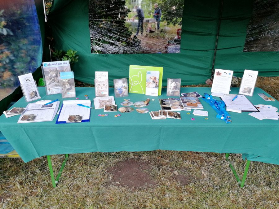 Inmitten von einem bunten Mix aus Kuchenbuffet, Hunde-Parcours und Frettchen-Gehege hatten wir bei unserem Stand viele nette Gespräche mit den Herrchen von Hund, Katze und Co. Besonderer Fokus lag dieses Mal auf den Themen der bundesweiten Kastrations- und Registrierungspflicht für Freigänger-Katzen, zu denen wir auch zahlreiche Unterschriften sammeln konnten.