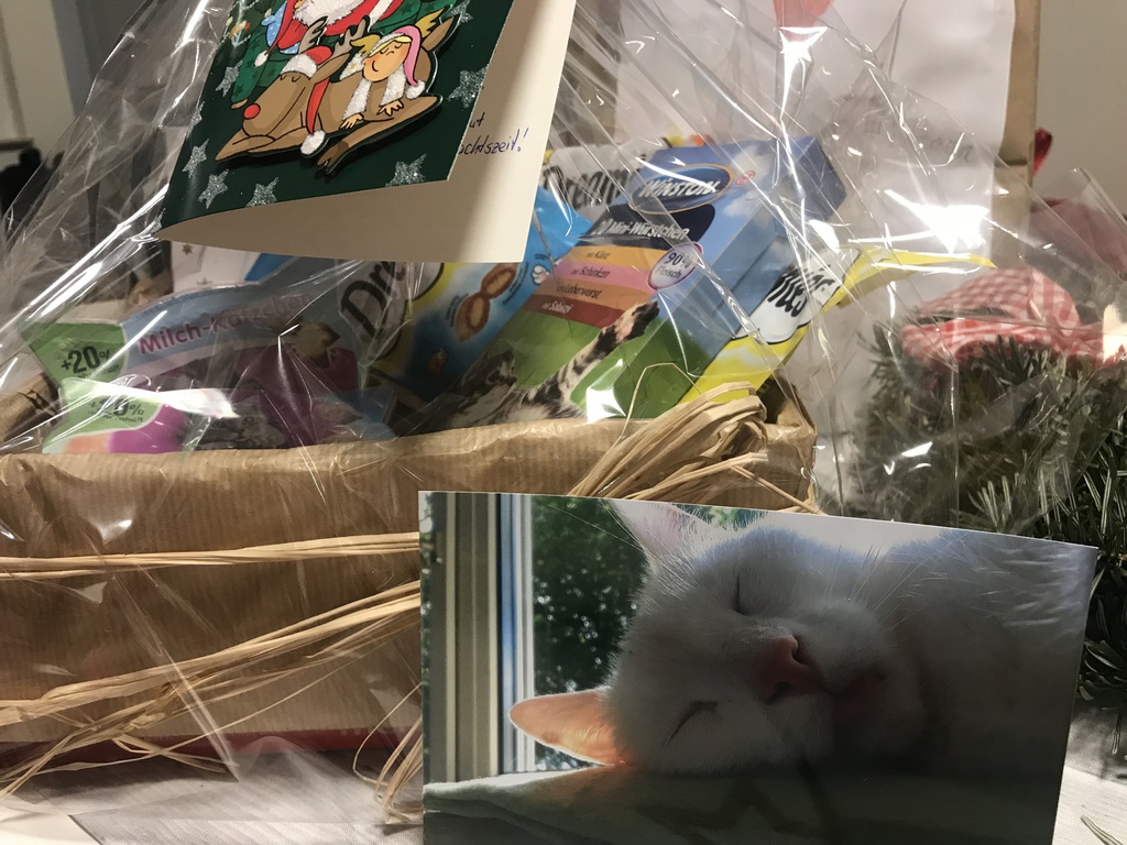 Trotz der wirklich ungünstigen Wettervorhersage durften wir sehr, sehr viele liebe Besucher in unserem Tierheim begrüßen. Schon vor dem offiziellen Beginn der Veranstaltung strömten tierliebe Menschen schwer bepackt mit den wundervollsten Geschenken für unsere Schützlingen auf das Katzenhaus zu. Auch viele neu zugezogene Mitbürger ließen es sich nicht entgehen sich einen genauer Eindruck von dem örtlichen Tierschutzverein zu machen. Schon Wochen vor der Tierweihnacht haben viele Menschen Kontakt zu uns aufgenommen und erfragt, welche Dinge die Tiere am meisten benötigen. Neben Futter und Leckerlis haben sich unsere Tiere Kuschelhöhlen und Spezialfutter gewünscht und diese Wünsche wurden ihnen großzügig erfüllt.