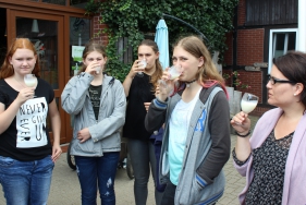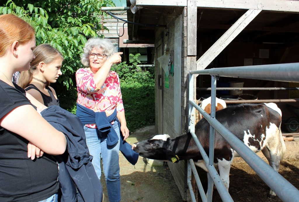Unsere Jugendgruppe war erstaunt über den großen Platz und die Bewegungsfreiheit der Tiere und hat den Kühen und Jungtieren gespannt beim Fressen und Melken zugeschaut. Der Besuch war sehr informativ und spannend: Wer hätte gedacht, dass Kühe untereinander Freundschaften eingehen und feste Schlafplätze haben? Ganz besonders toll fanden die Mädels aber vor allem das abschließende Kaemena-Eis, welches vor Ort aus der eigenen Milch zubereitet wird.