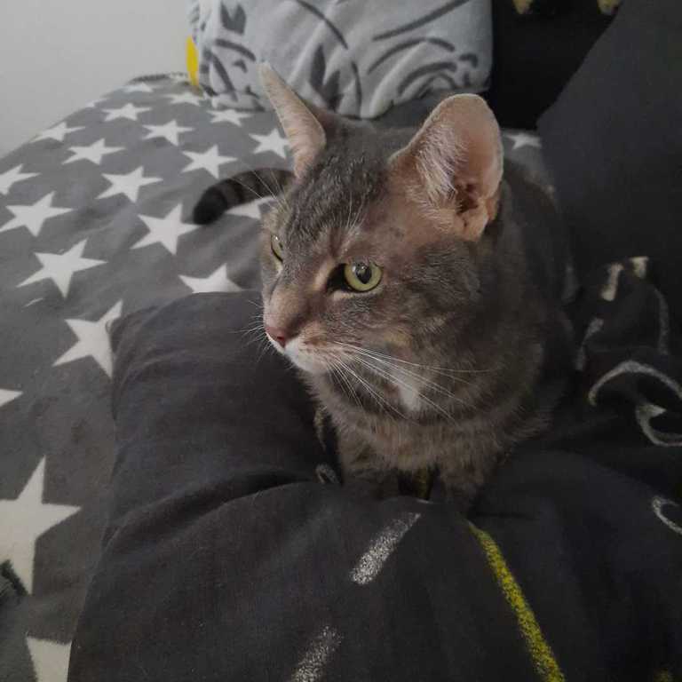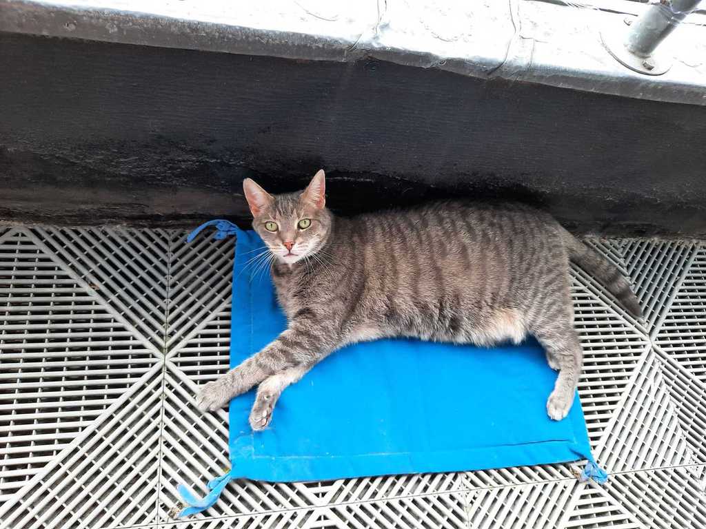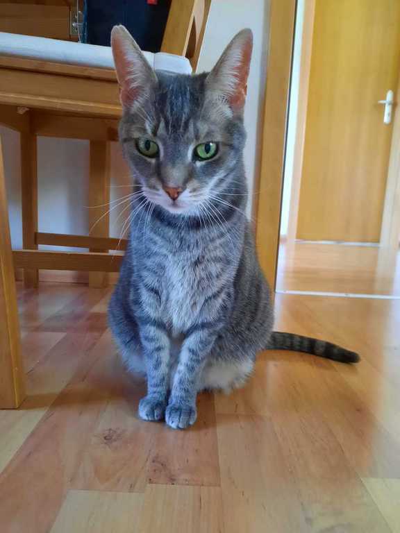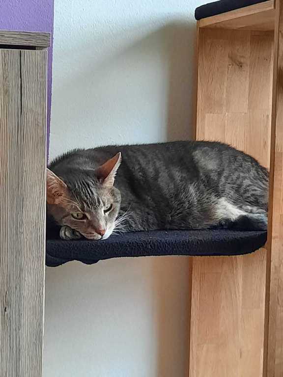 Sie geht auf den Balkon und genießt die Sonne. Ihren Kratzbaum hat sie ebenfalls als ihren angenommen.