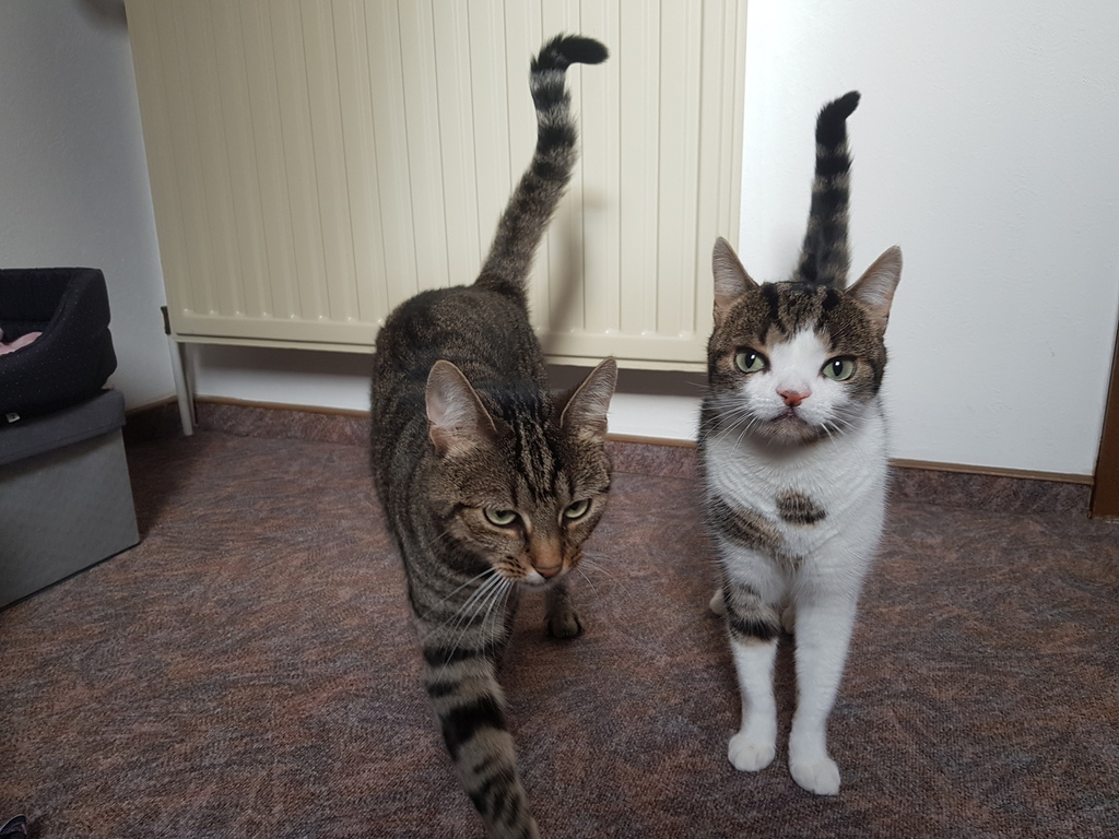 Dort haben noch zwei große Kater gelebt und daher haben wir vorerst in einem katzengerechten Zimmer im Obergeschoss gewohnt. Einer der beiden Kater mochte uns nicht so gerne. Im Dezember, genauer gesagt an Nikolaus, sind meine Schwester Lulu und ich zu Zweibeiner Melanie und der acht Monate alten Katze Penny gezogen.