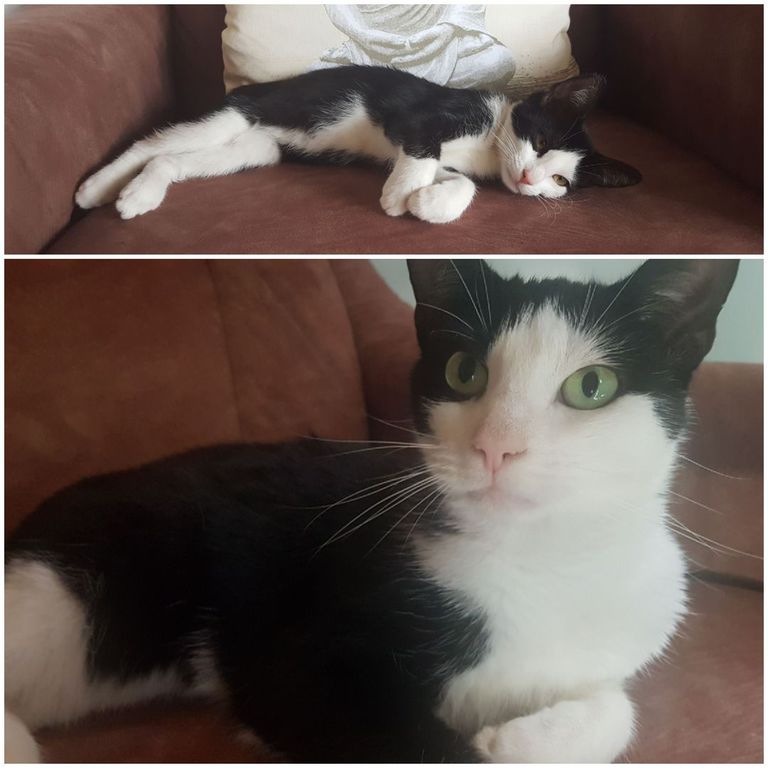 Die Tierärzte haben gesagt, ich werde nicht so groß wie „normale“ Katzen, aber da kennen sie mich schlecht. Mittlerweile bin ich geauso groß wie meine Schwester.