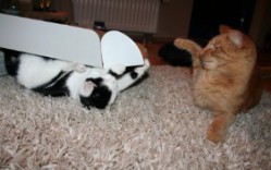 Da wir schon einmal zwei Katzen im Haus hatten und dies nicht ansatzweise so harmonisch verlief wie jetzt, sind wir sehr glücklich, dass die zwei in so kurzer Zeit dicke Freunde geworden sind!