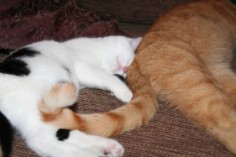 Wir hatten ein wenig Bedenken, dass Kater Rosty nicht so begeistert von unserer Idee sein würde, aber nach nicht mal einem Tag war die Rangordnung geklärt und die zwei sind seit dem unzertrennlich.