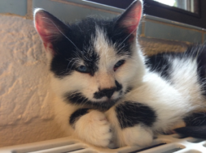 Er war ein sehr zutrauliches Kerlchen und spielt gerne. Leider wurden bei der tierärztlichen Untersuchung motorische Störungen, ein leichter Herzfehler und Sehstörungen festgestellt. Um ihm die Ruhe