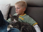 Er wird von allen bekuschelt und genießt es sehr. Auch bei viel Kinderbesuch bleibt er entspannt und lässt sich ausgiebig streicheln.