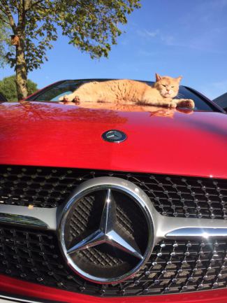 Samson holte alle unsere Mitarbeiterinnen und Mitarbeiter bei Ankunft im Katzenhaus am Auto ab und begleitete alle auch wieder zum Auto, denn er hatte noch die Hoffnung, die ein oder andere Knuspertasche auf dem Weg zu bekommen. Er war ja so schlau und er wusste auch ganz genau, was er wollte.