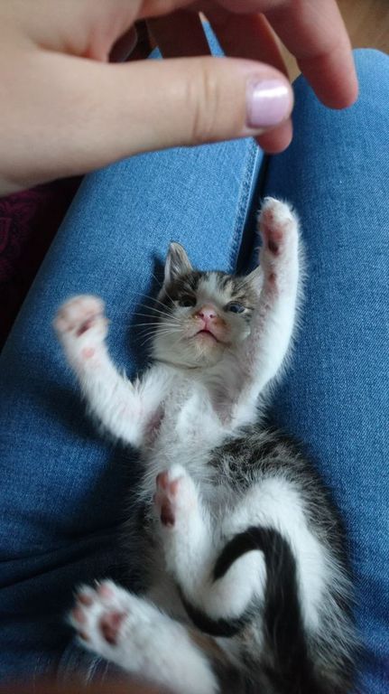 Als diese wundervollen Katzenbabys zur uns gebracht wurden teilten uns die Finder mit, dass sie die Kätzchen in einem Maisfeld entdeckt haben. Trotz intensiver Suche, konnte kein Muttertier entdeckt werden. Frosty und seine Geschwister waren noch so winzig, dass unbedingt schnell gehandelt werden musste. Also brachte man sie zu unserem Vereinstierarzt, wo sie erstmalaufgepäppelt wurden. Da die kleinen Katzenbabys noch Milch brauchten, kamen sie für einige Zeit in eine Pflegestelle, wo sie intensiv versorgt werden konnten.